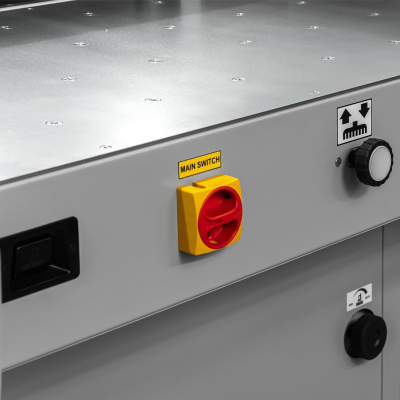 Safety is assured thanks to the IR Safety Curtain technology from SICK and true two handed operation via a SICK Safety Controller. Error messaging, adjustable side lay guides and the market leading safety functions further enhance the guillotines appeal as a production machine.
