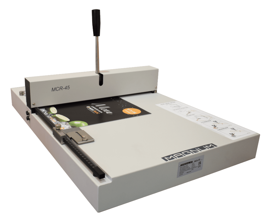 The Magnum MCR-45 is a manually operated creasing machine ideal for greeting cards and low-volume card creasing applications. Simple entry-level desktop design capable of creasing heavy cards in weights up to 350gsm and formats up to SRA2 (600 x 450mm). The specially designed crease-rule matrix prevents fibre cracking on digitally printed materials. The Magnum MCR-45 is an ideal companion for craft and home card-making companies who are looking for a professional, reliable card creasing solution.