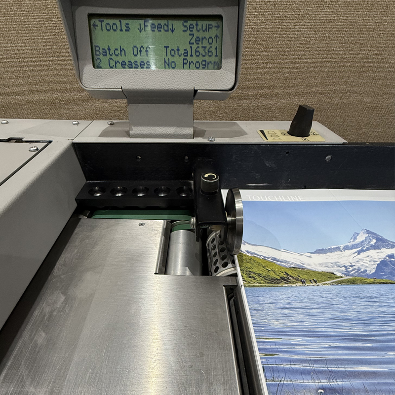 An important advantage of the Morgana AutoCreaser 50 Mark 2 design is its “rule-and-matrix” creasing mechanism (rather than rotary scoring). This produces clean folds without fibre-tearing or cracking, making it ideal for high-quality brochure, book cover, card or invitation production.