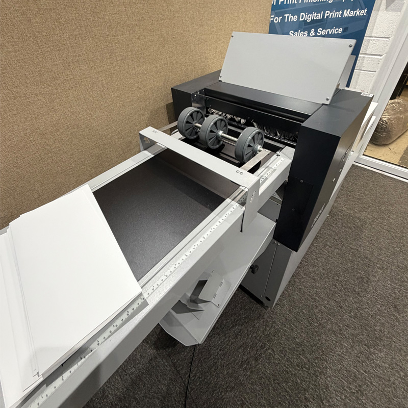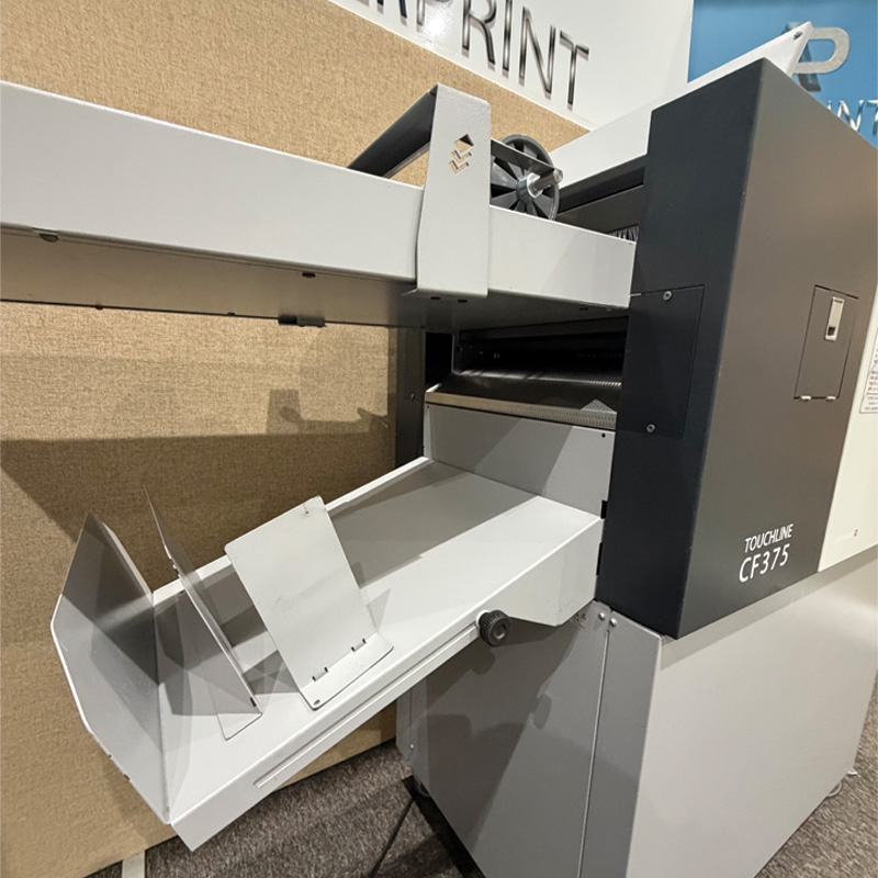 The Multigraf Touchline CF375 is a user friendly creasing and folding machine that will improve your productivity and your finishing quality. Highly efficient and automated, it allows users to crease and fold in a single pass, with setting up finished in seconds. Creasing without fibre cracking is possible using the system’s unique Multigraf Swingbar Crease system. Additionally, this system allows the crease tool to travel with the sheet, therefore preventing the need to stop the sheet to apply the crease. In turn, this speeds up production to an impressive 5,000 sheets per hour.