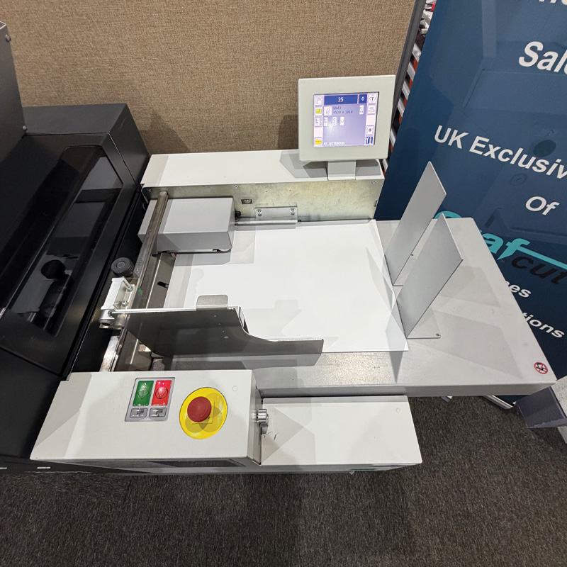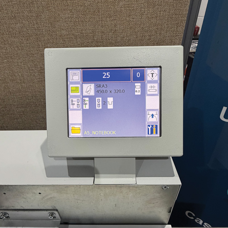 The Creaser/Folder Multigraf Touchline CF375 handles the widest range of paper stock of any machine in the world market. Capable of handling from 80 up to 400gsm, without any tool changes or re-configuring of the machine. Class-leading flexibility allows the CF375 to be used as a stand-alone creaser, a paper folder or with optional tooling a dedicated perforator. An integrated touch screen controller keeps every aspect of the machine operation at your fingertips. With unlimited program memory for repeat jobs and instant recall.